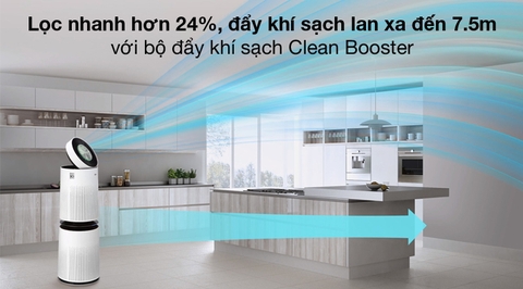 Bộ đẩy khí Clean Booster giúp làm sạch nhanh hơn 24%, đẩy không khí sạch đi xa hơn đến 7.5m, phân bố khí sạch rộng khắp phòng